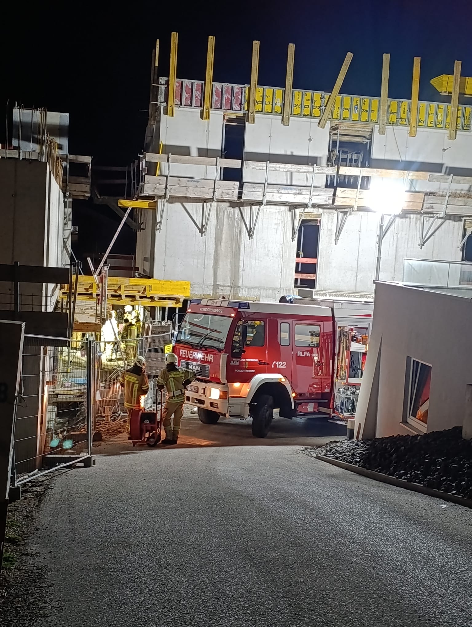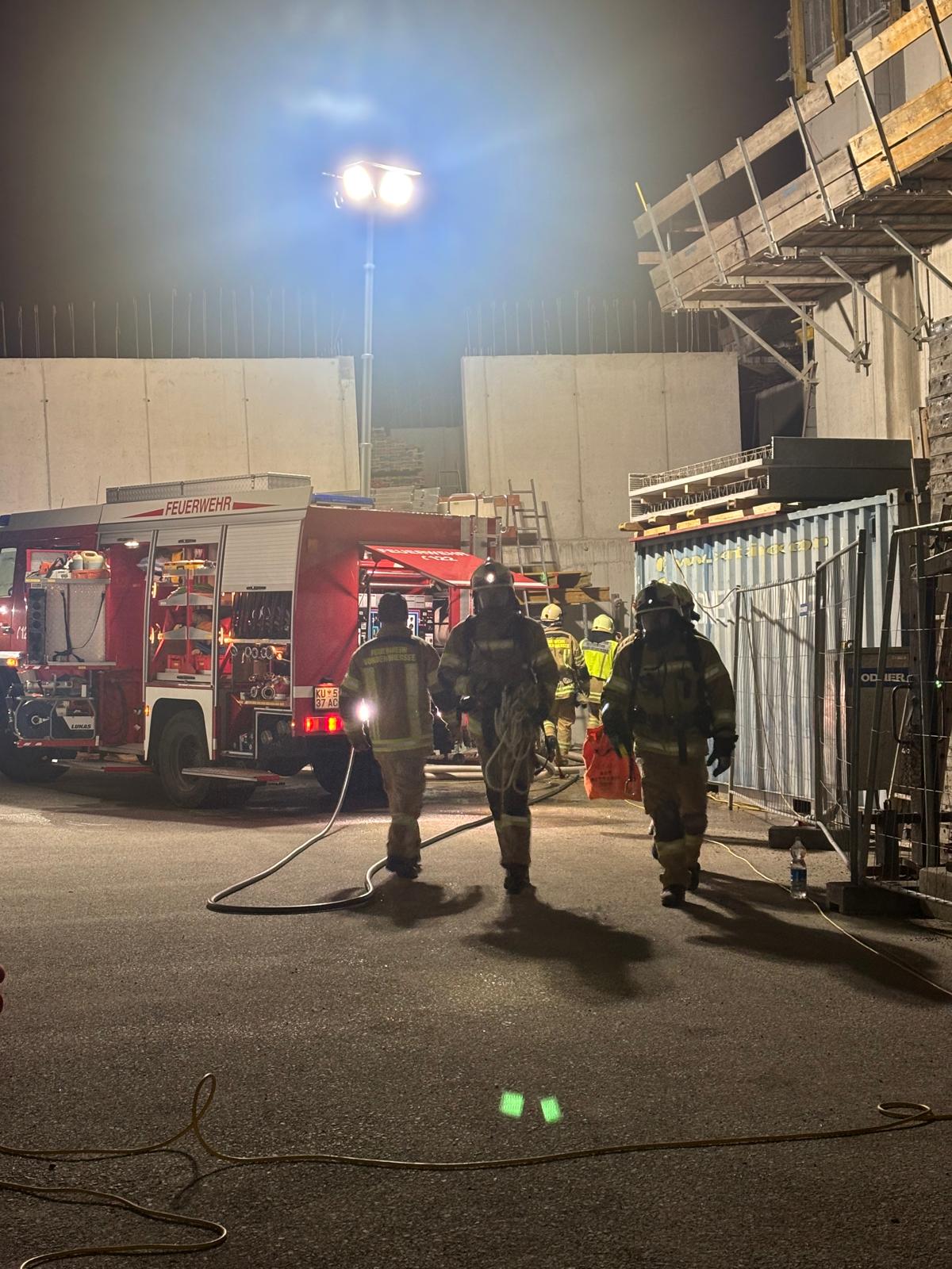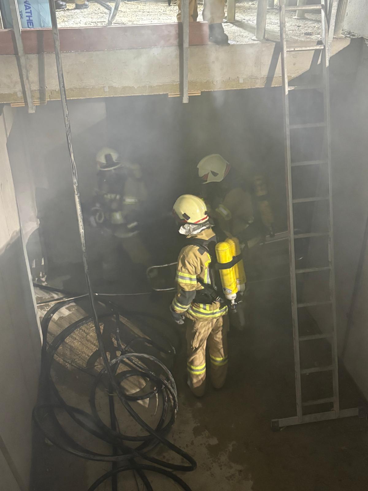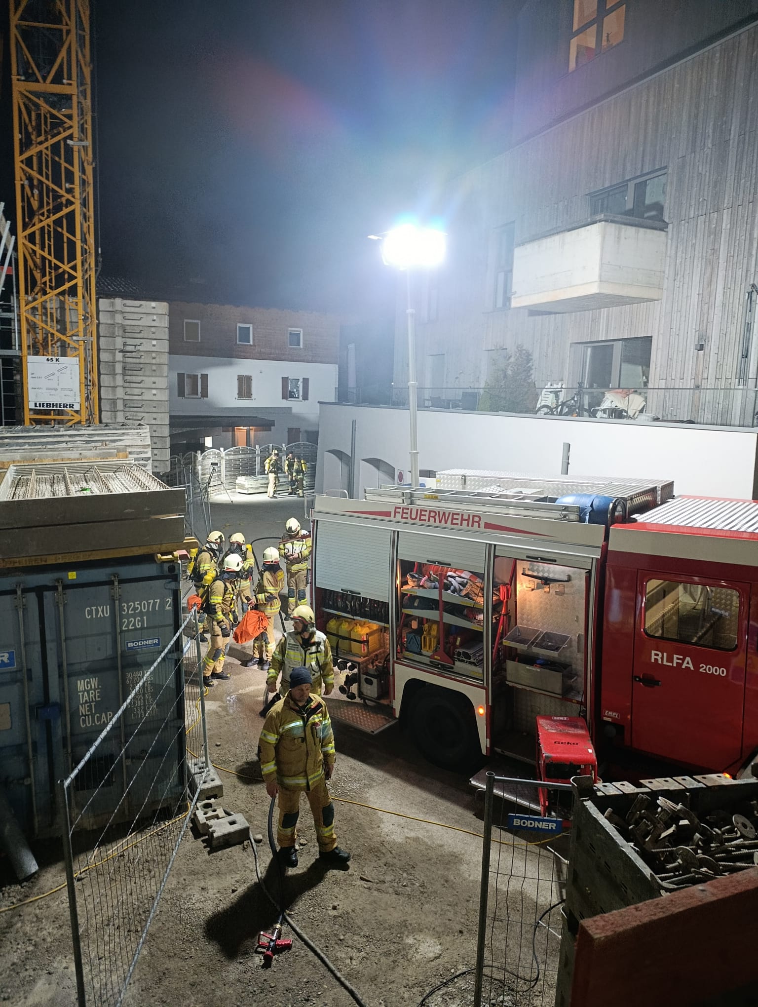 Übungsannahme war ein Brand auf einer Baustelle mit zwei vermissten Personen im Kellerbereich.