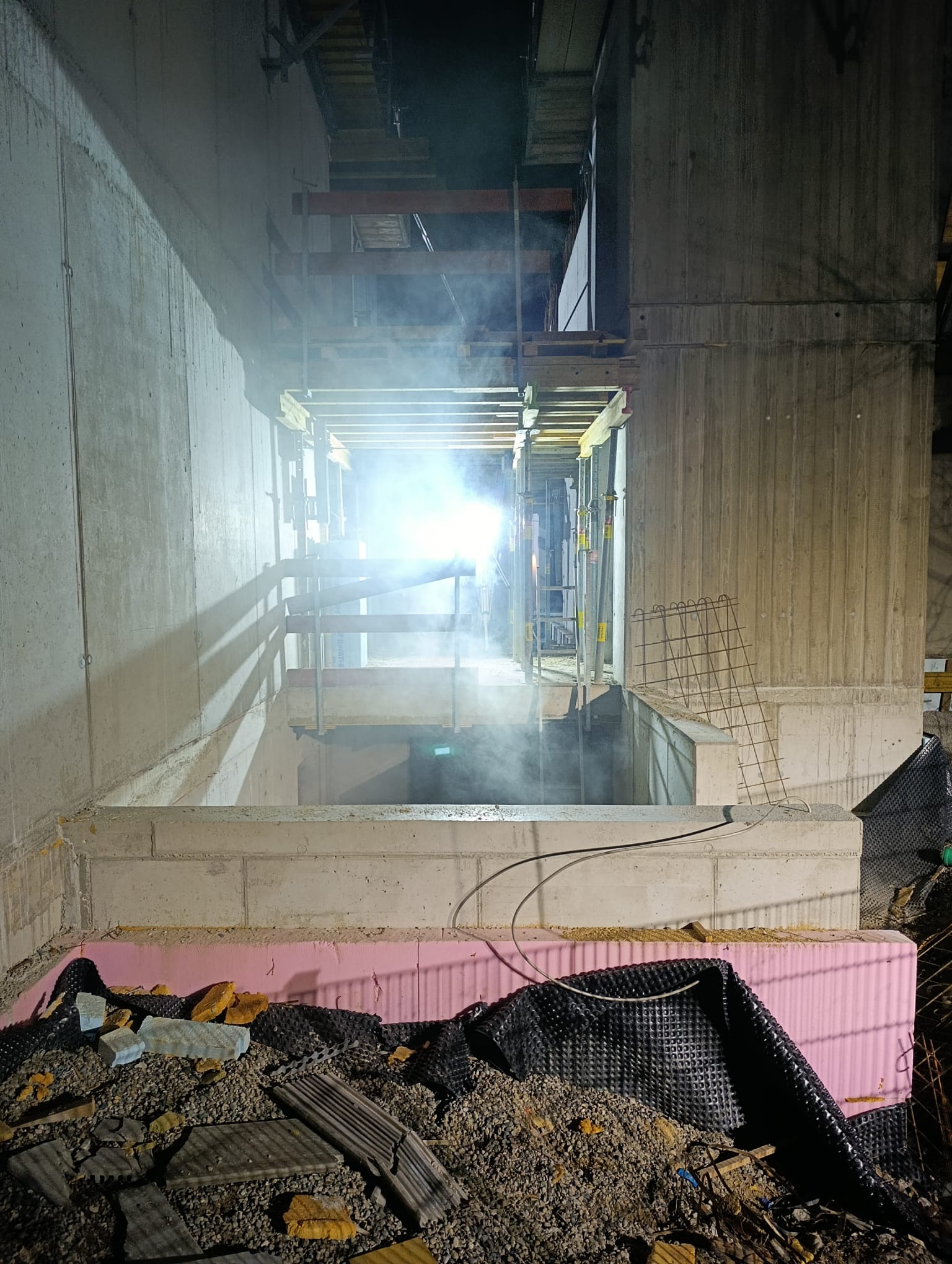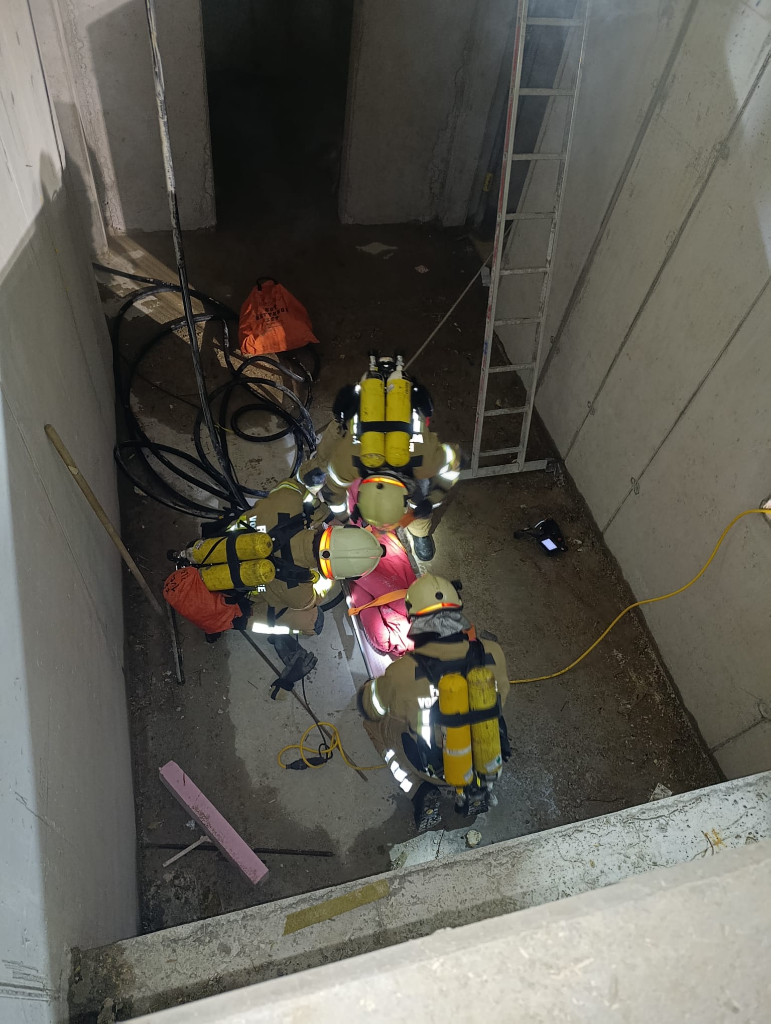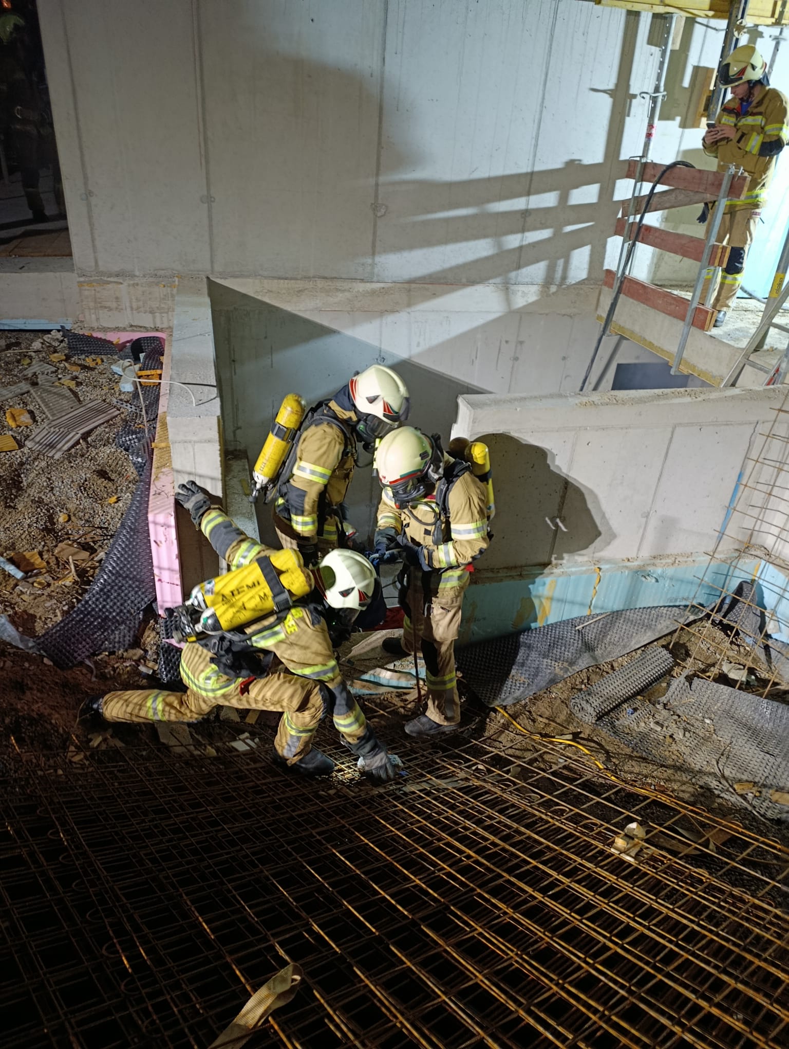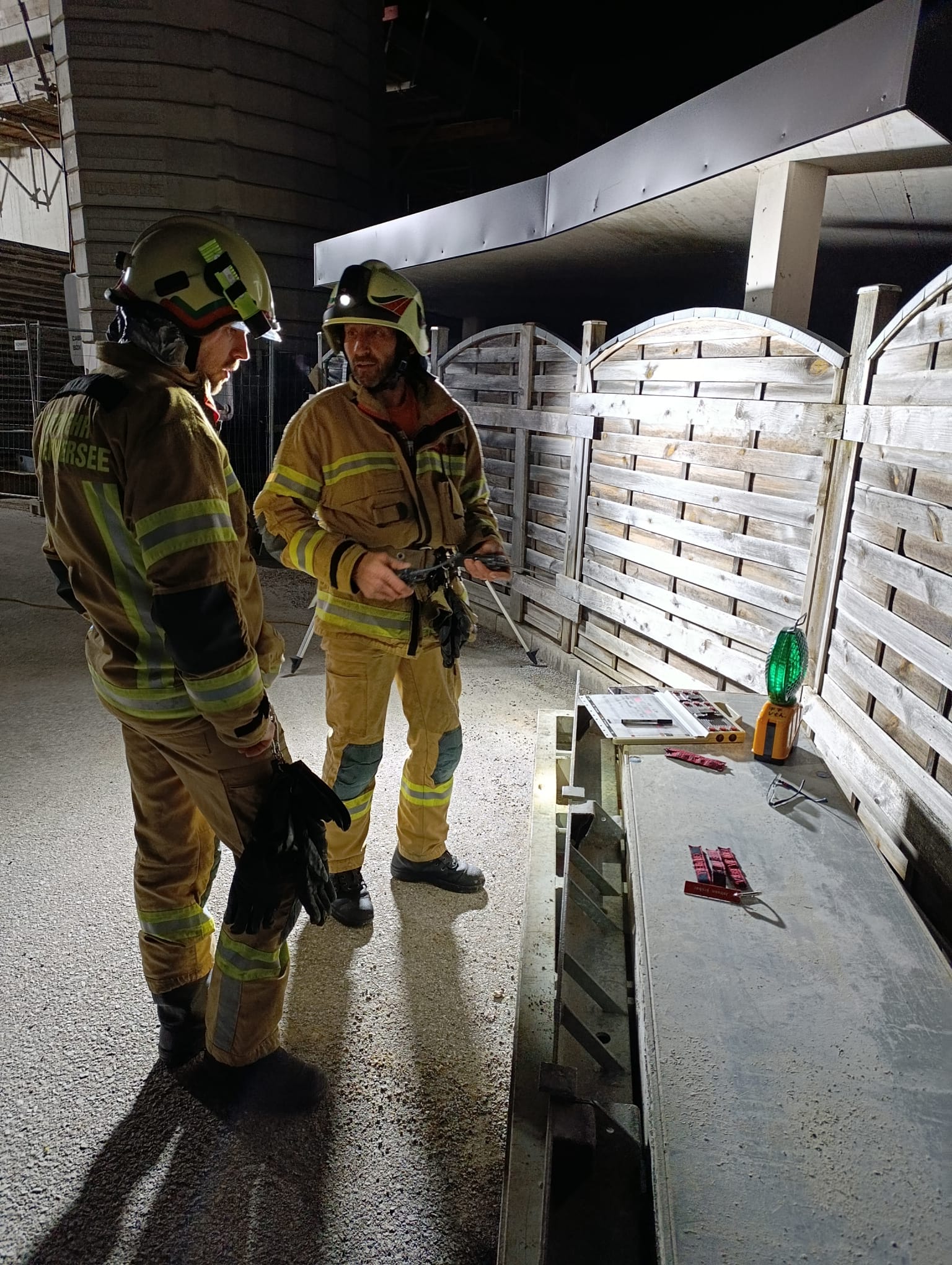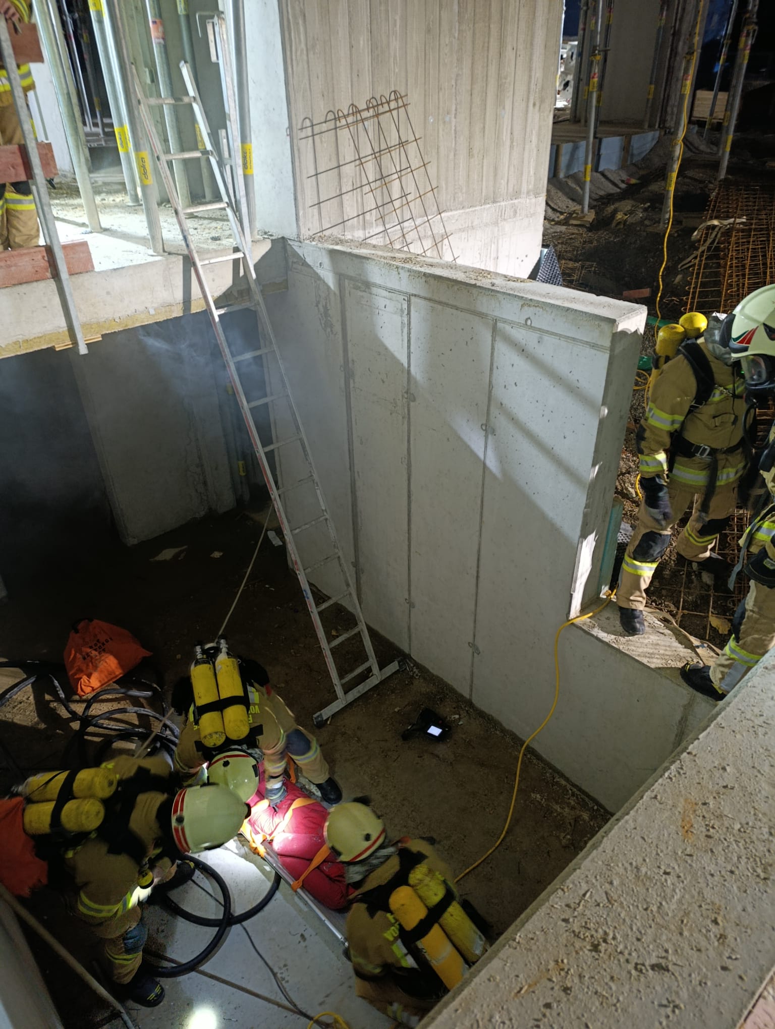 Übungsannahme war ein Brand auf einer Baustelle mit zwei vermissten Personen im Kellerbereich.