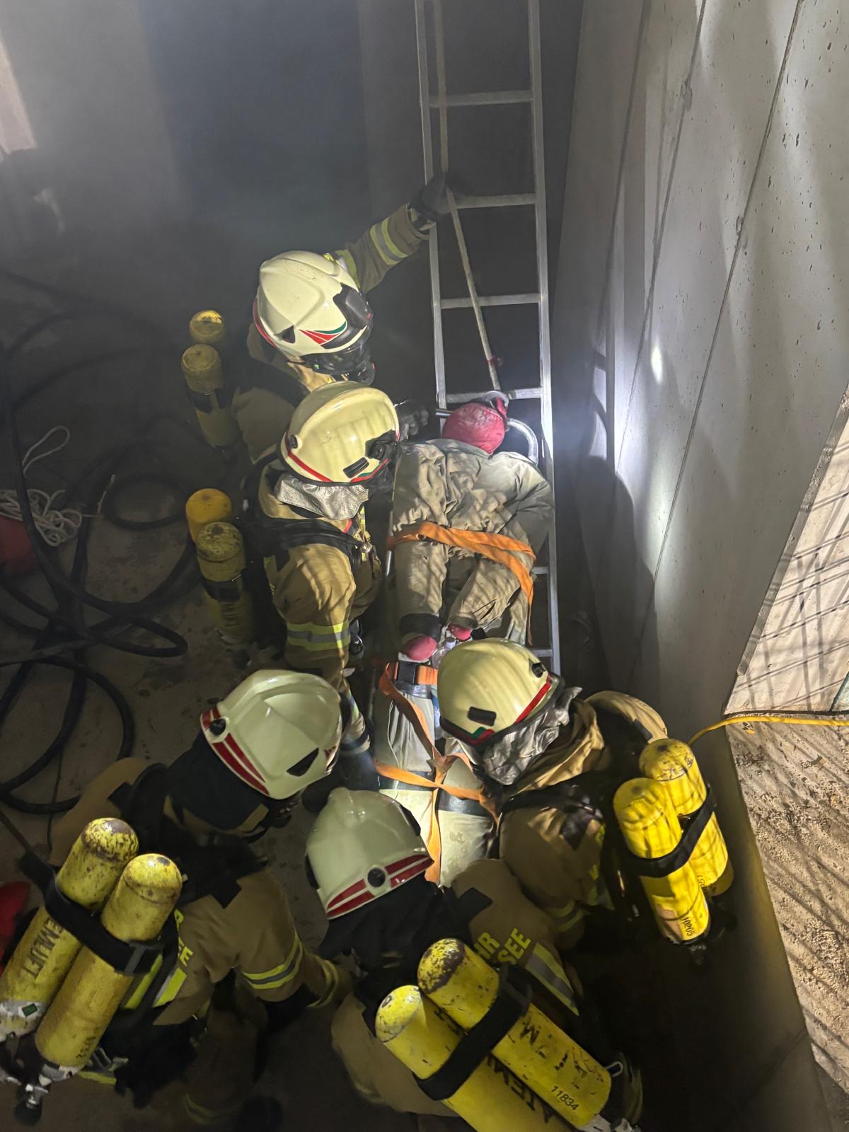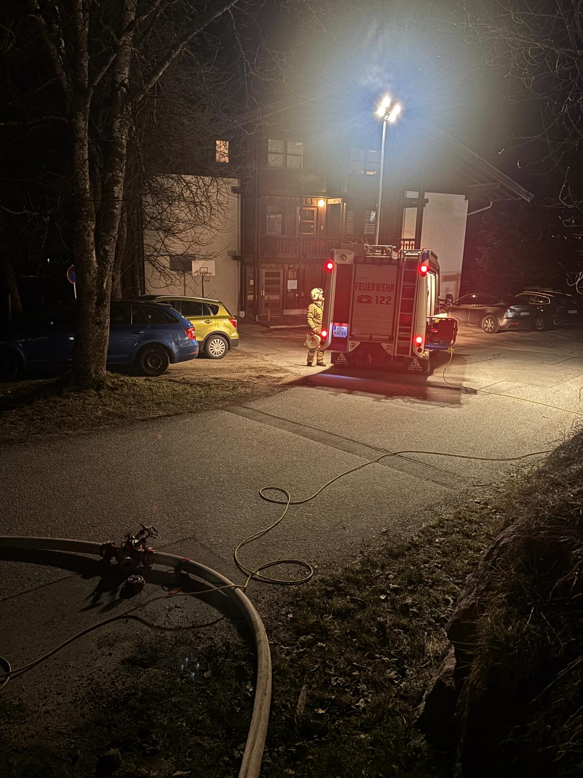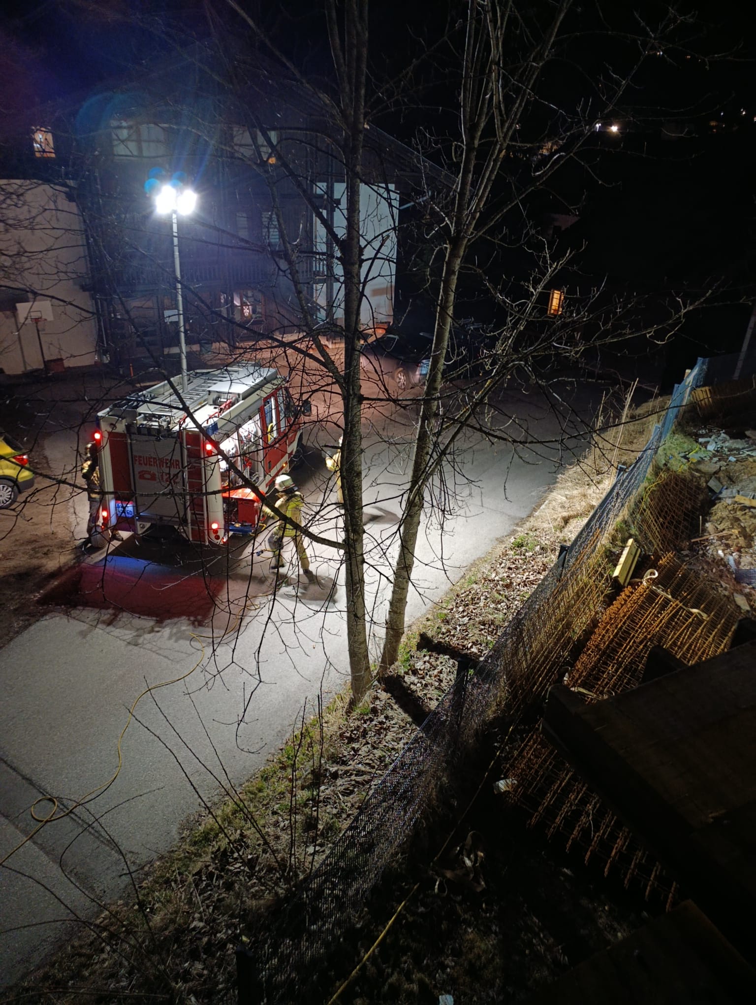 Die zwei Atemschutztrupps fanden im stark verrauchten Keller die Verletzten und bargen diese mittels Trage über eine Leiter in das Erdgeschoss.