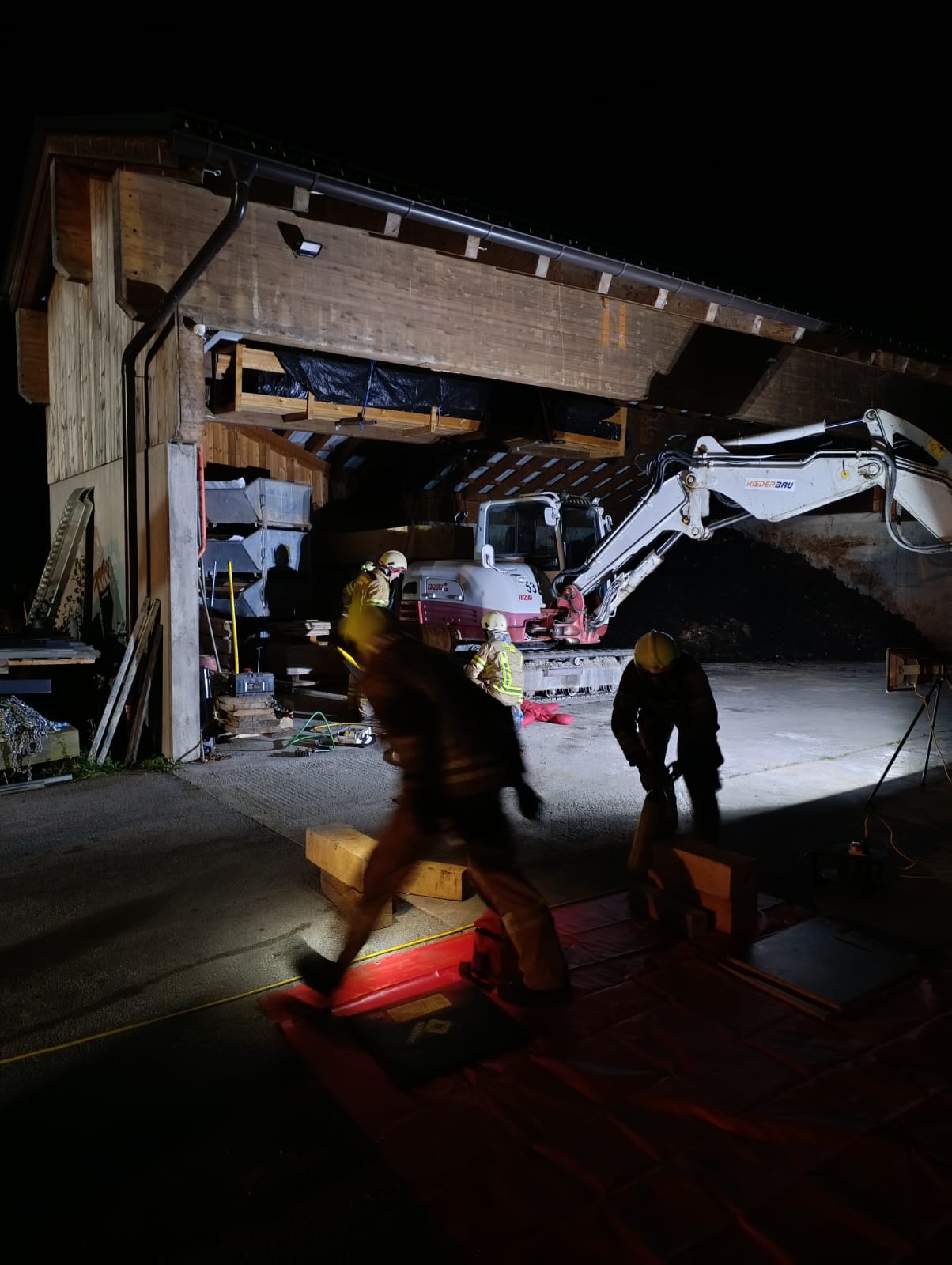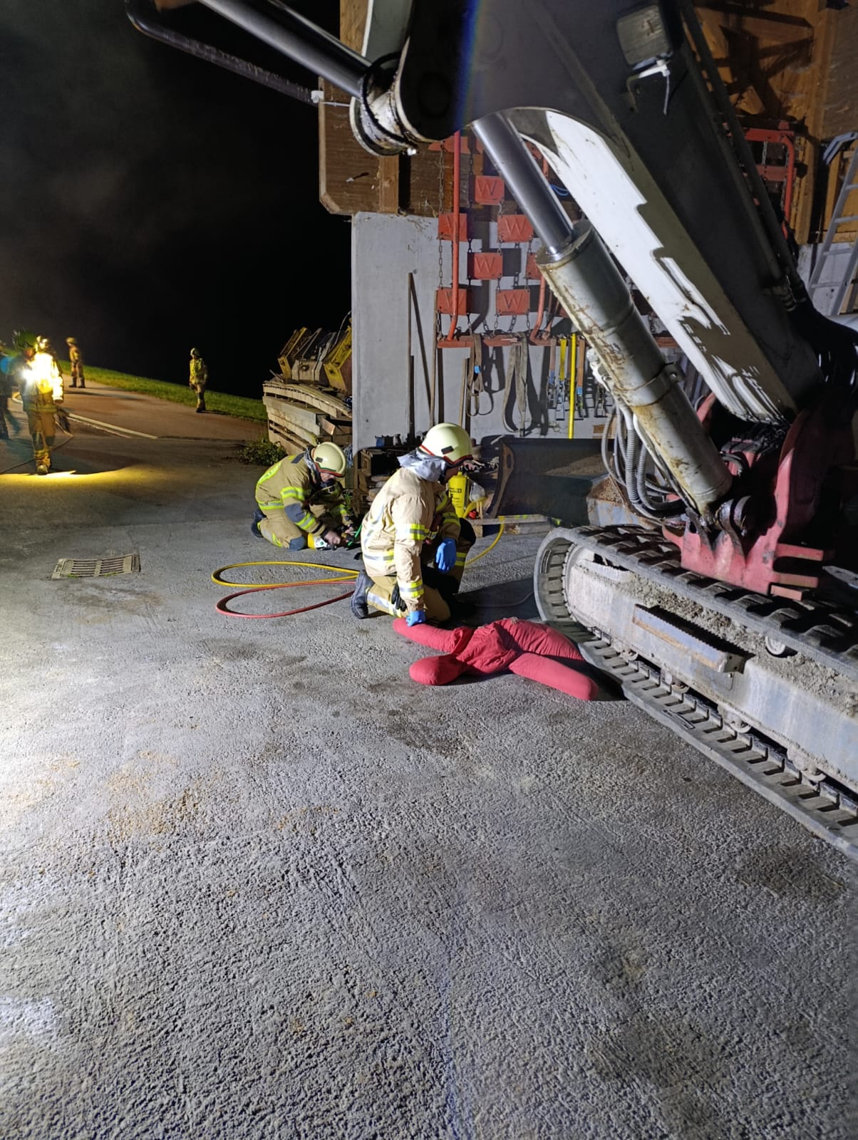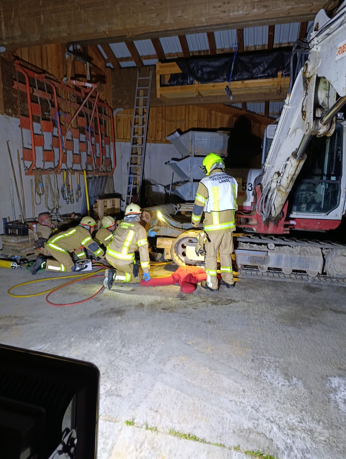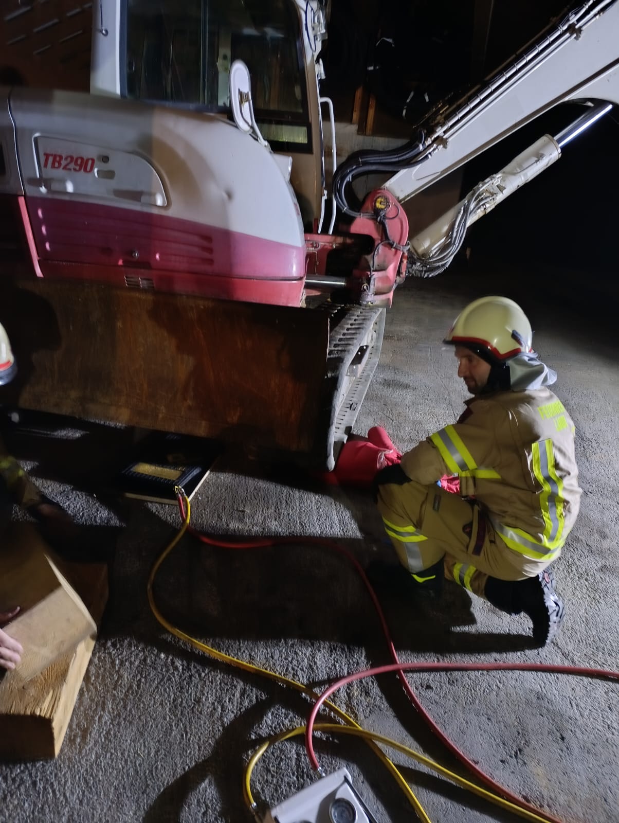 Währenddessen wurde eine unter dem Bagger eingeklemmte Person mittels Hebekissen befreit.