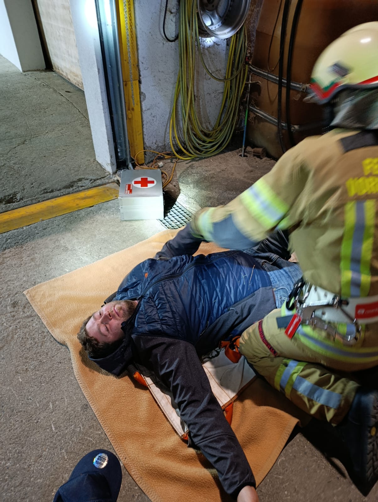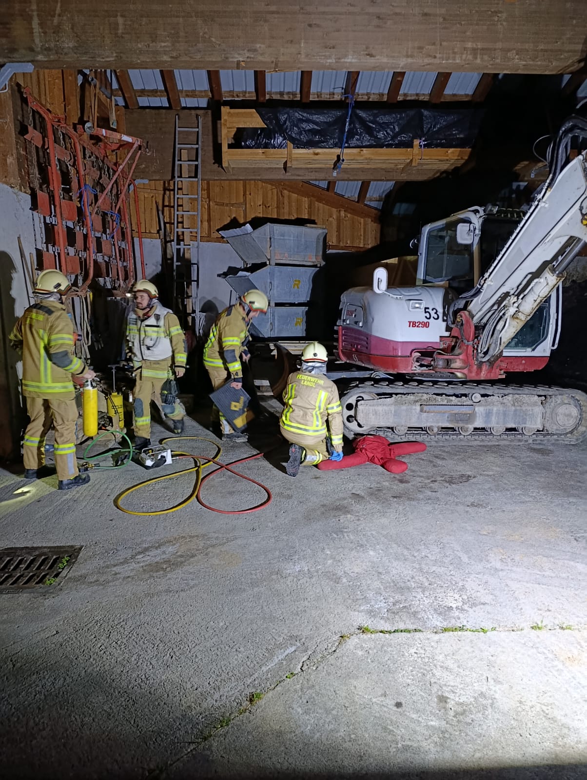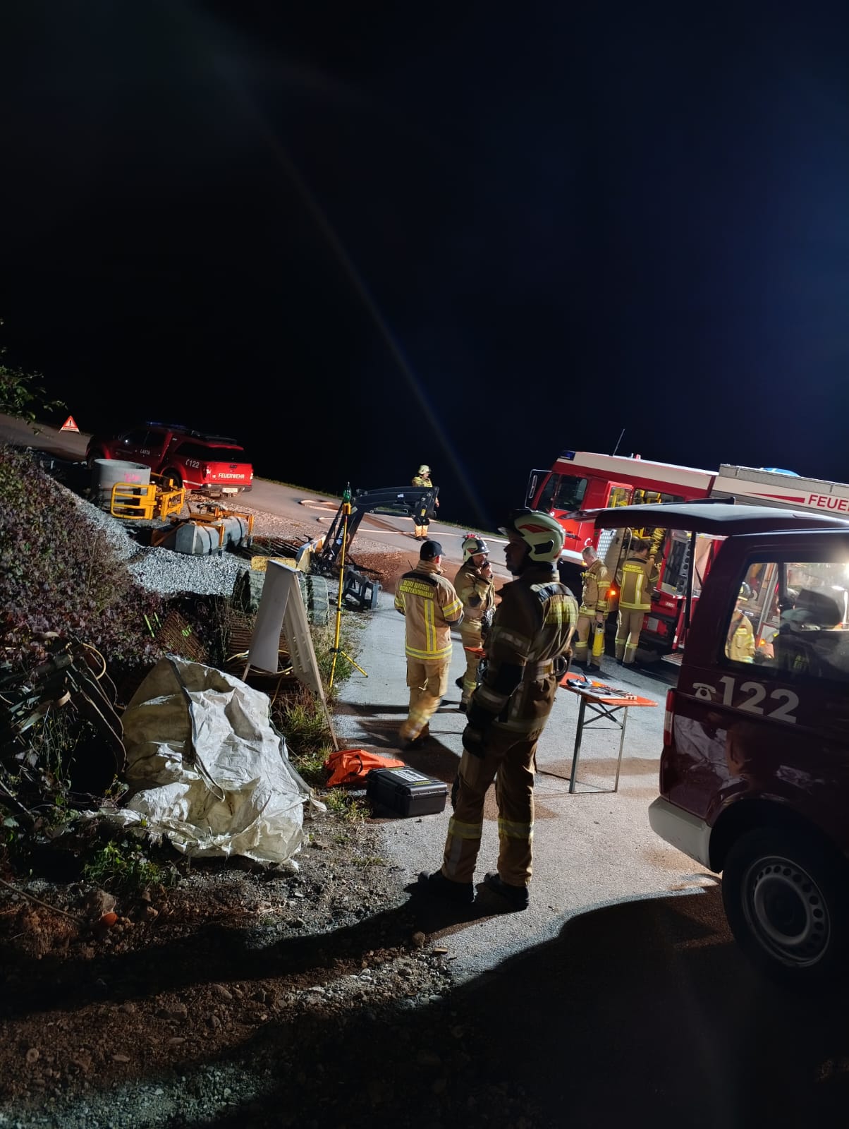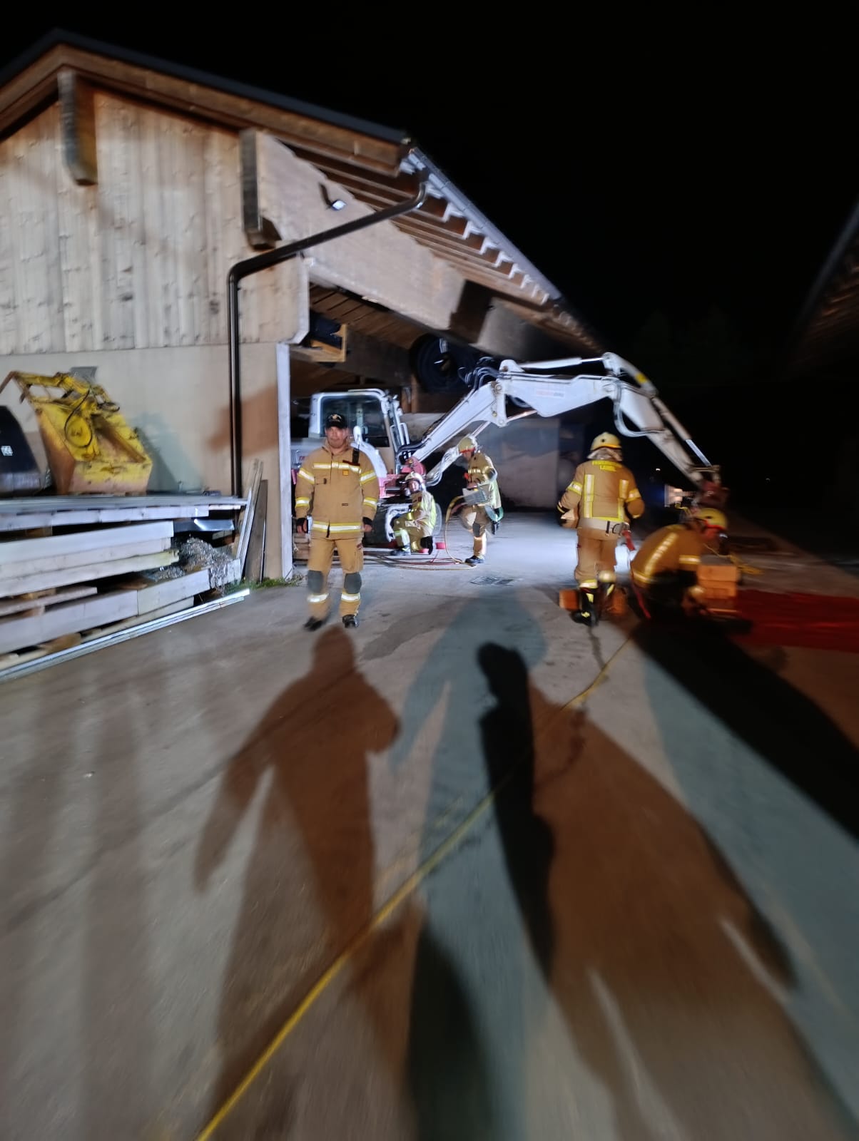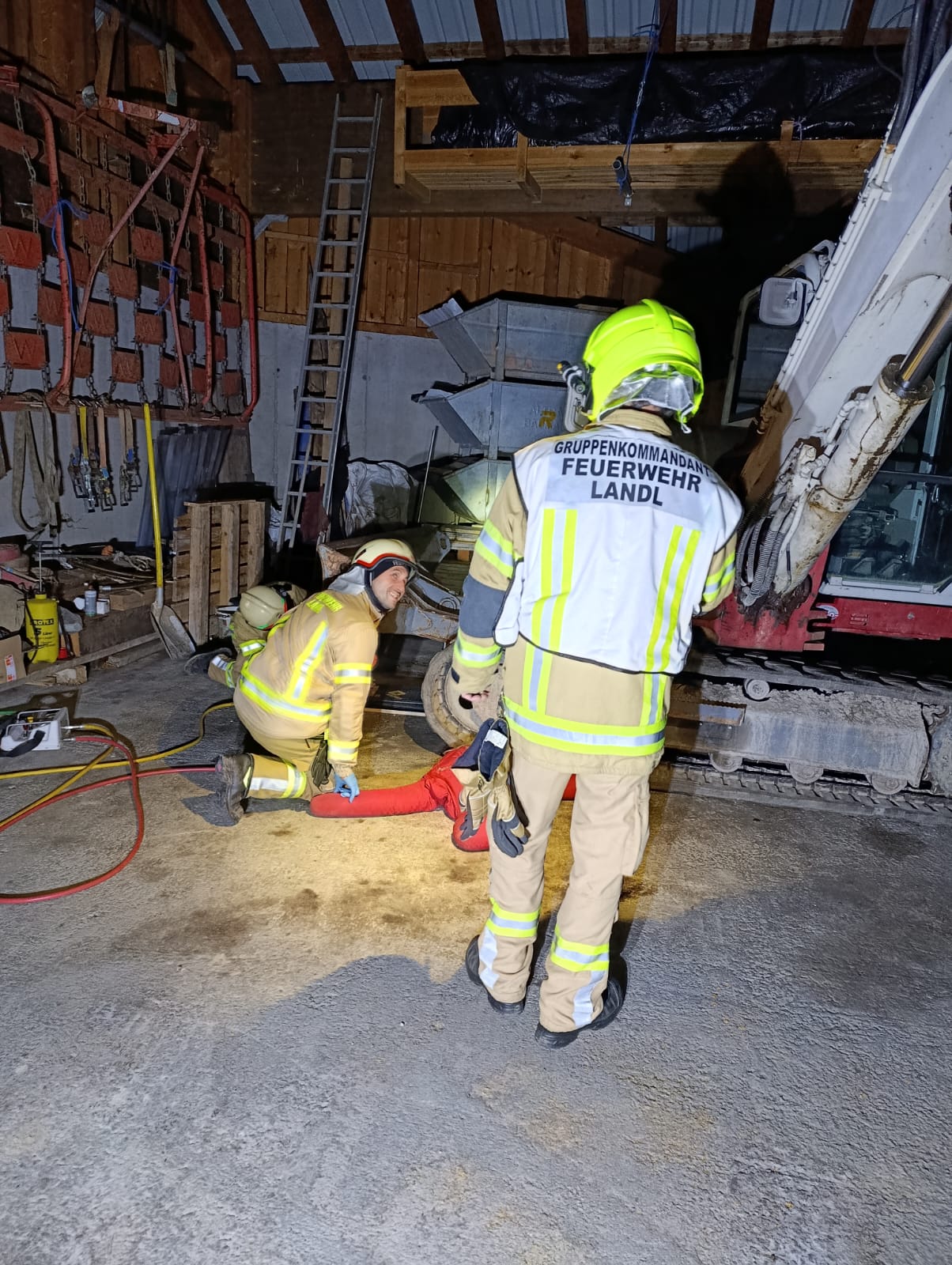 Währenddessen wurde eine unter dem Bagger eingeklemmte Person mittels Hebekissen befreit.