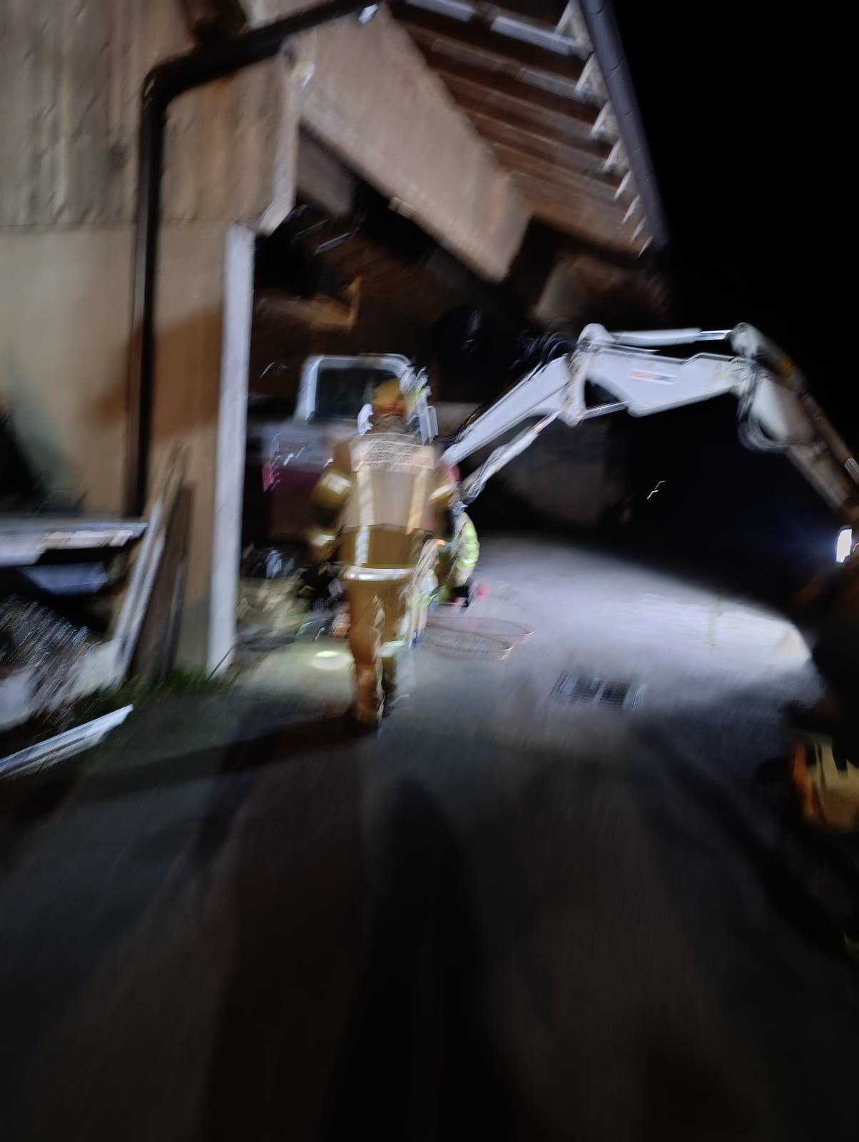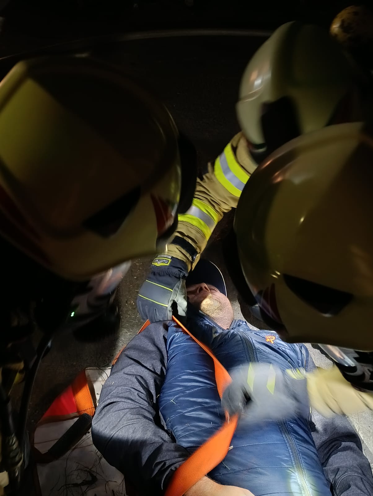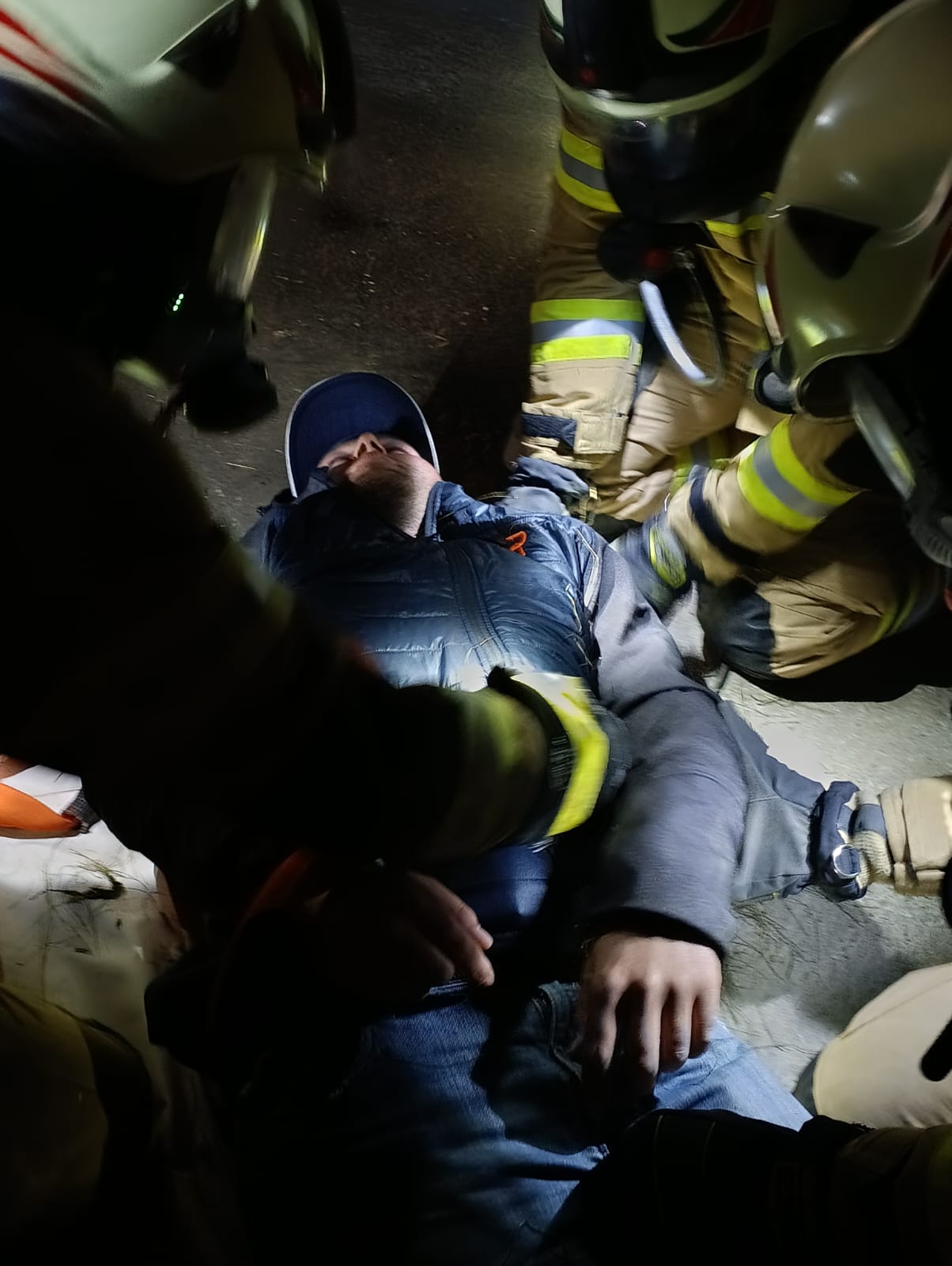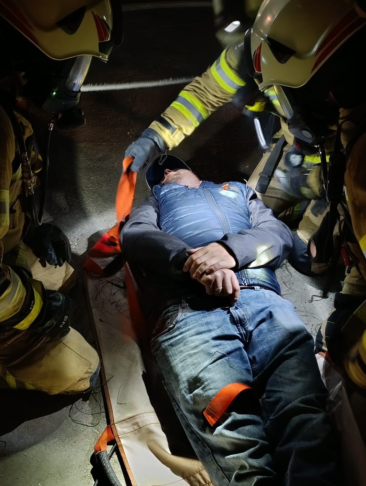 Währenddessen wurde eine unter dem Bagger eingeklemmte Person mittels Hebekissen befreit.