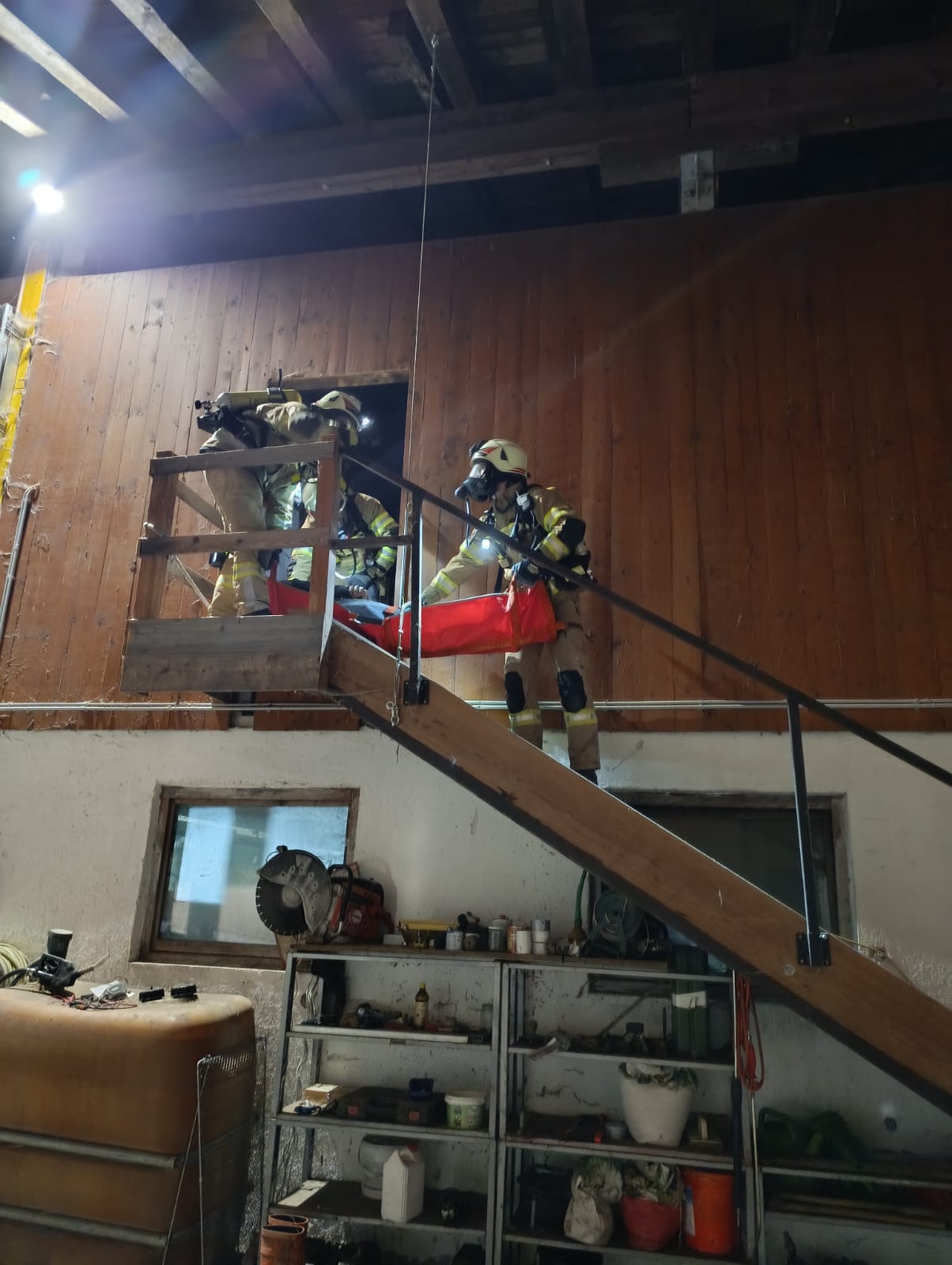 Übungsszenario war ein Brand in der Heutenne mit vermissten Personen und eine eingeklemmte Person.