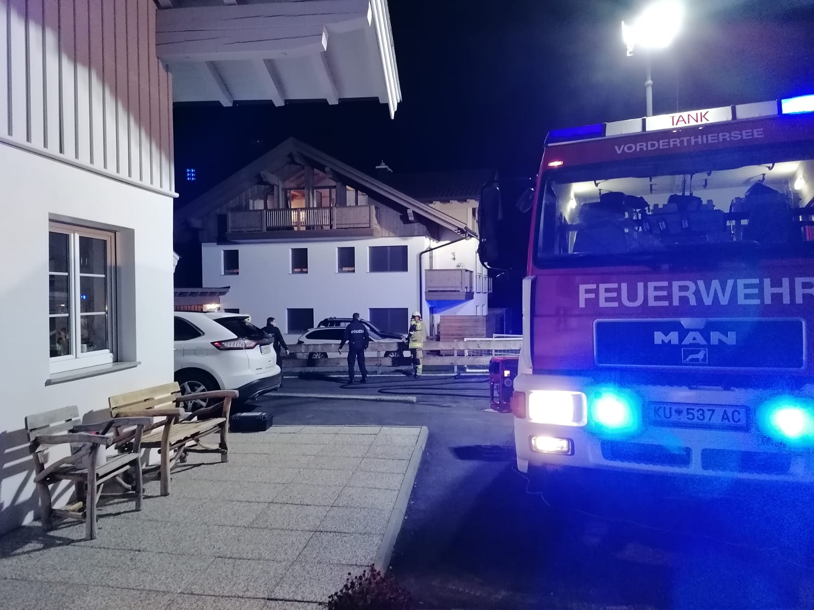 Von der freiwilligen Feuerwehr Vorderthiersee rückten 3 Fahrzeuge mit 33 Mann aus.