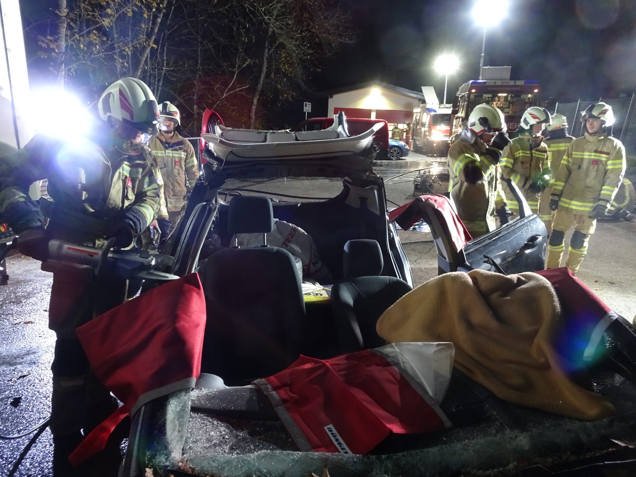 Übungsszenario war ein Verkehrsunfall mit einem verunfallten PKW.
