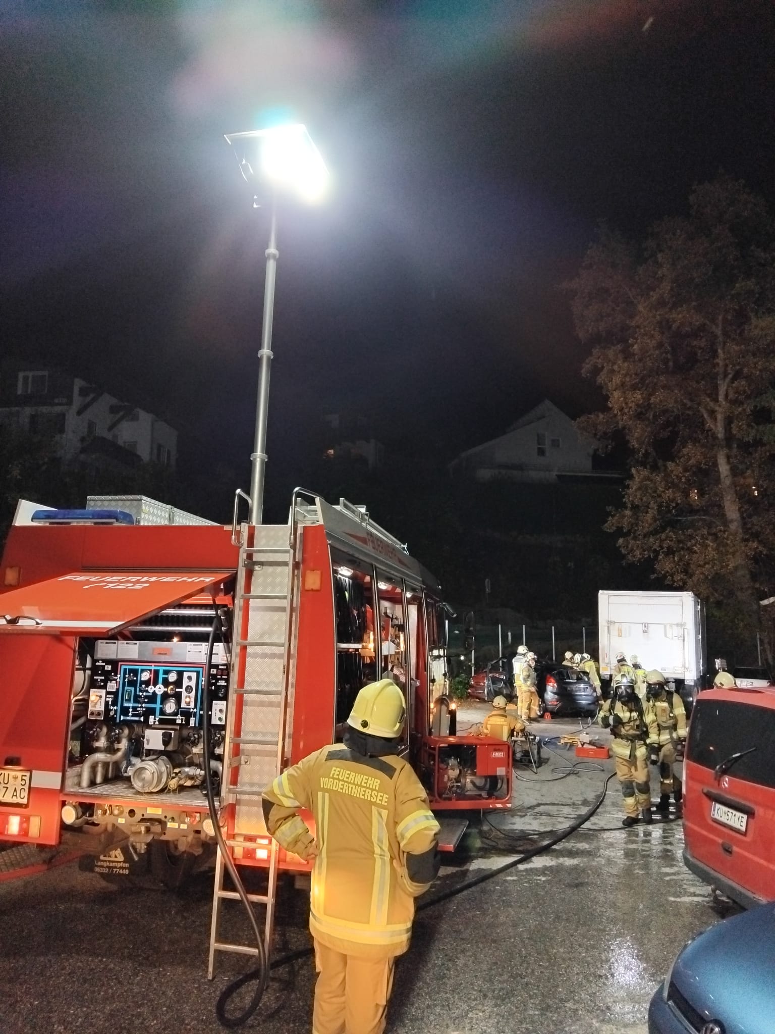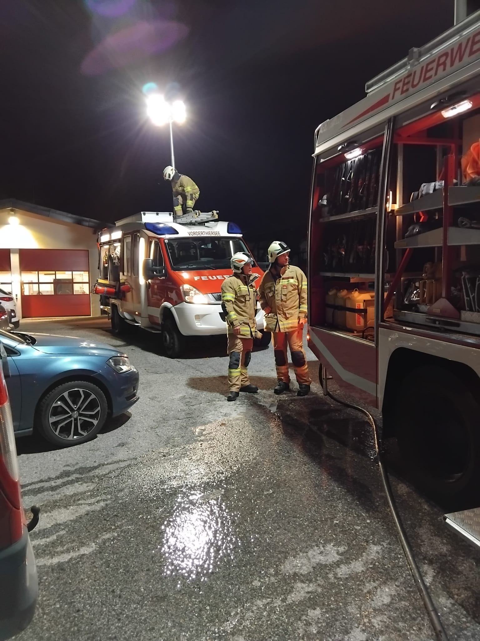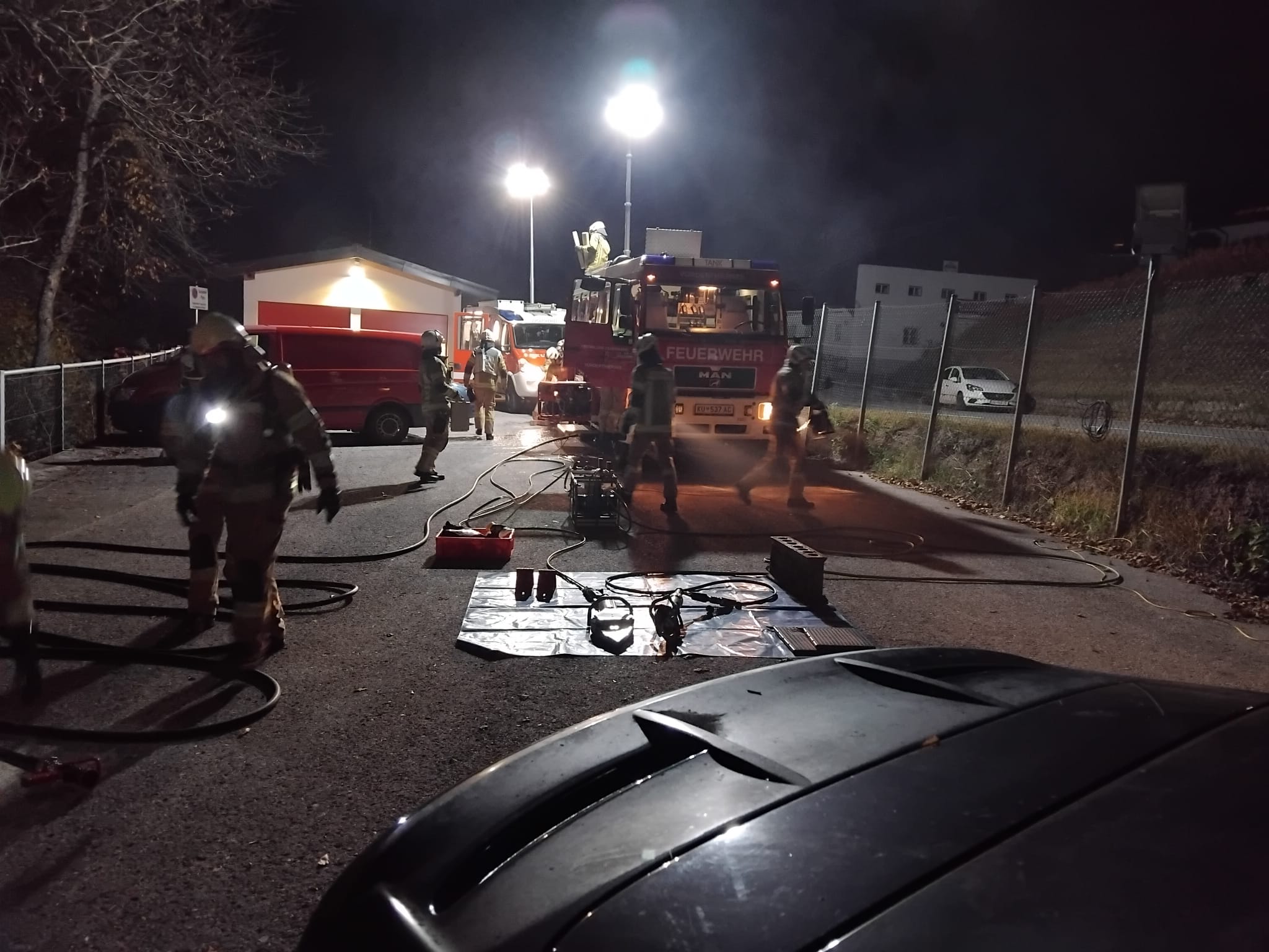Der PKW rauchte beim Eintreffen der Feuerwehr und wurde vom Atemschutztrupp gelöscht.