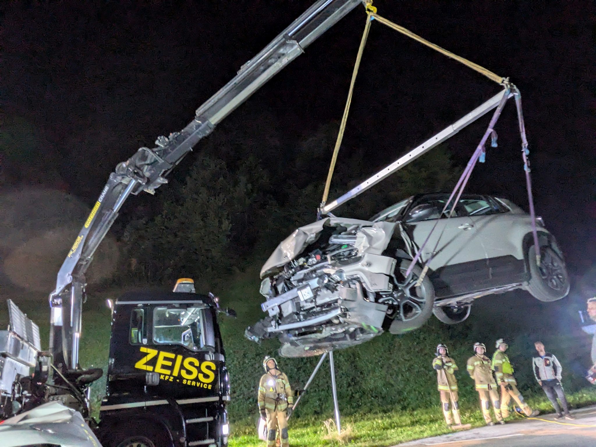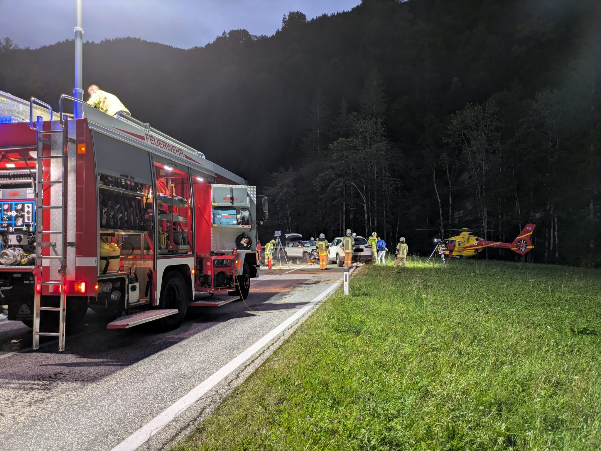 Insgesamt waren 5 Feuerwehrfahrzeuge mit 45 Mann, ein Rettungsfahrzeug, der Rettungshubschrauber und Die Polizei mit einem Fahrzeug im Einsatz.